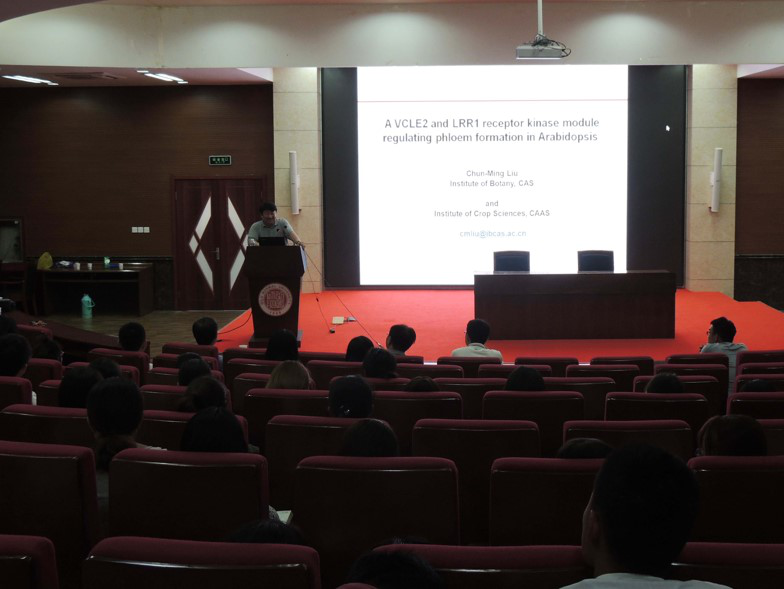 随后,刘所长在学校学术报告厅做了题为“植物筛管发育调控的分子机理”的学术报告,我校生命科学学院200余名师生参加了学术报告会。报告中,刘所长系统介绍了植物多肽激素的研究进展,并重点介绍了VCLE2调控拟南芥筛管发育的分子机理。报告会后还进行了现场互动答疑,对于师生提出的问题刘所长都一一给予了解答。报告会现场气氛热烈,交流充分。学术报告会由生命科学学院院长李师鹏教授主持。