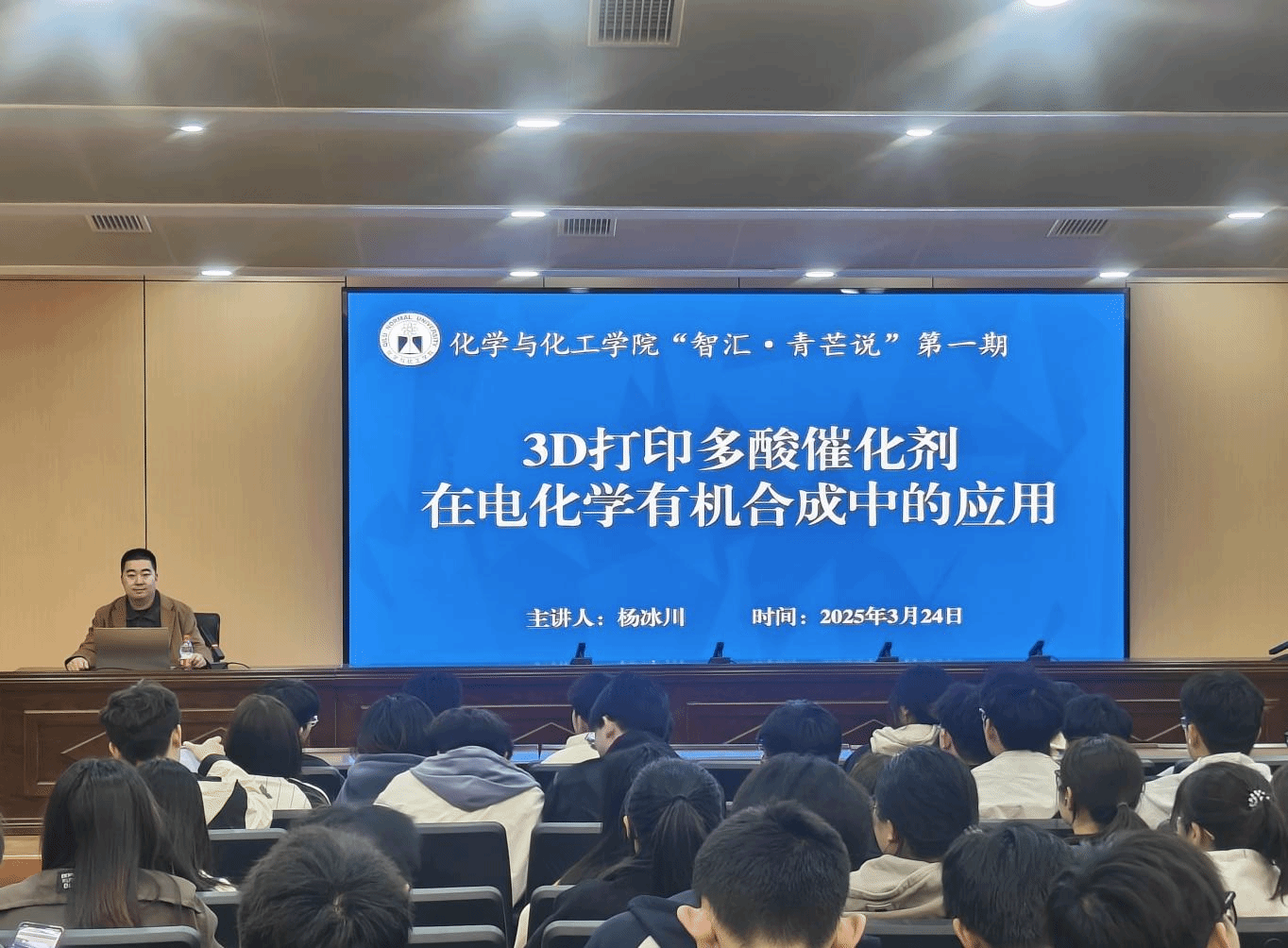 为拓宽学生学术视野,搭建创新交流平台,3月24日,化学与化工学院在第二学术报告厅成功举办首期“智汇・青芒说”青年博士学术讲座。学院优秀青年博士杨冰川以《3D打印多酸催化剂在电化学有机合成中的应用》为题作学术报告,学生代表到场聆听。