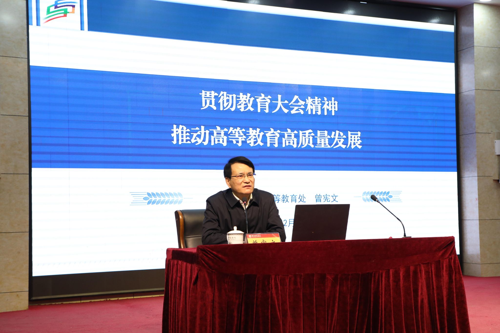 下午,山东省教育厅高等教育处处长曾宪文作题为《贯彻教育大会精神,推动高等教育高质量发展》的报告。曾宪文结合全国教育大会精神和山东省高等教育发展实际,详细解读了全省高等教育高质量发展的战略布局和政策导向,为齐鲁师范学院在全省高等教育格局中找准定位、明确方向提供了重要指导。