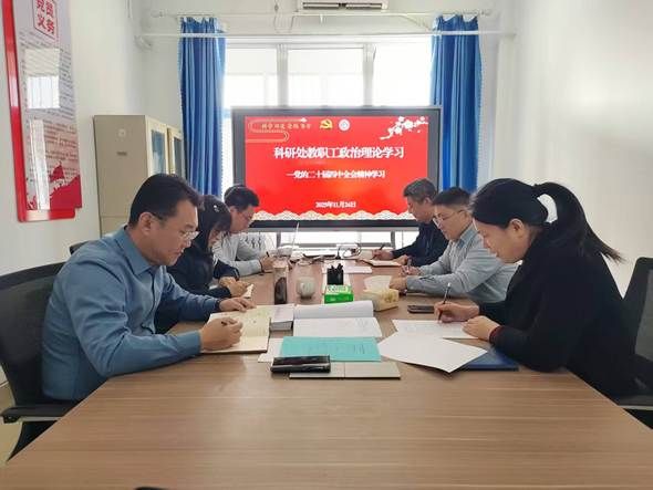 为深入学习贯彻党的二十届四中全会精神,深刻把握教育、科技、人才良性循环、相互支撑的辩证关系,11月24日上午,科研处(学科建设办公室)在综合楼A407会议室组织党的二十届四中全会精神专题学习。专题学习由科研处处长于家杰主持,副处长赵欣领学。