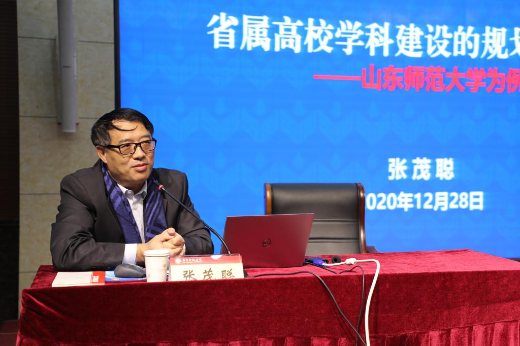 随后,山东师范大学发展规划与学科建设处处长张茂聪作了专题报告。报告从学科概念、学科和专业的区别、提升学科竞争力的核心要素、关键问题、学科建设的基本逻辑、十四五发展规划新思考等六个方面,结合山东师范大学学科建设经验,作了详细的阐述。