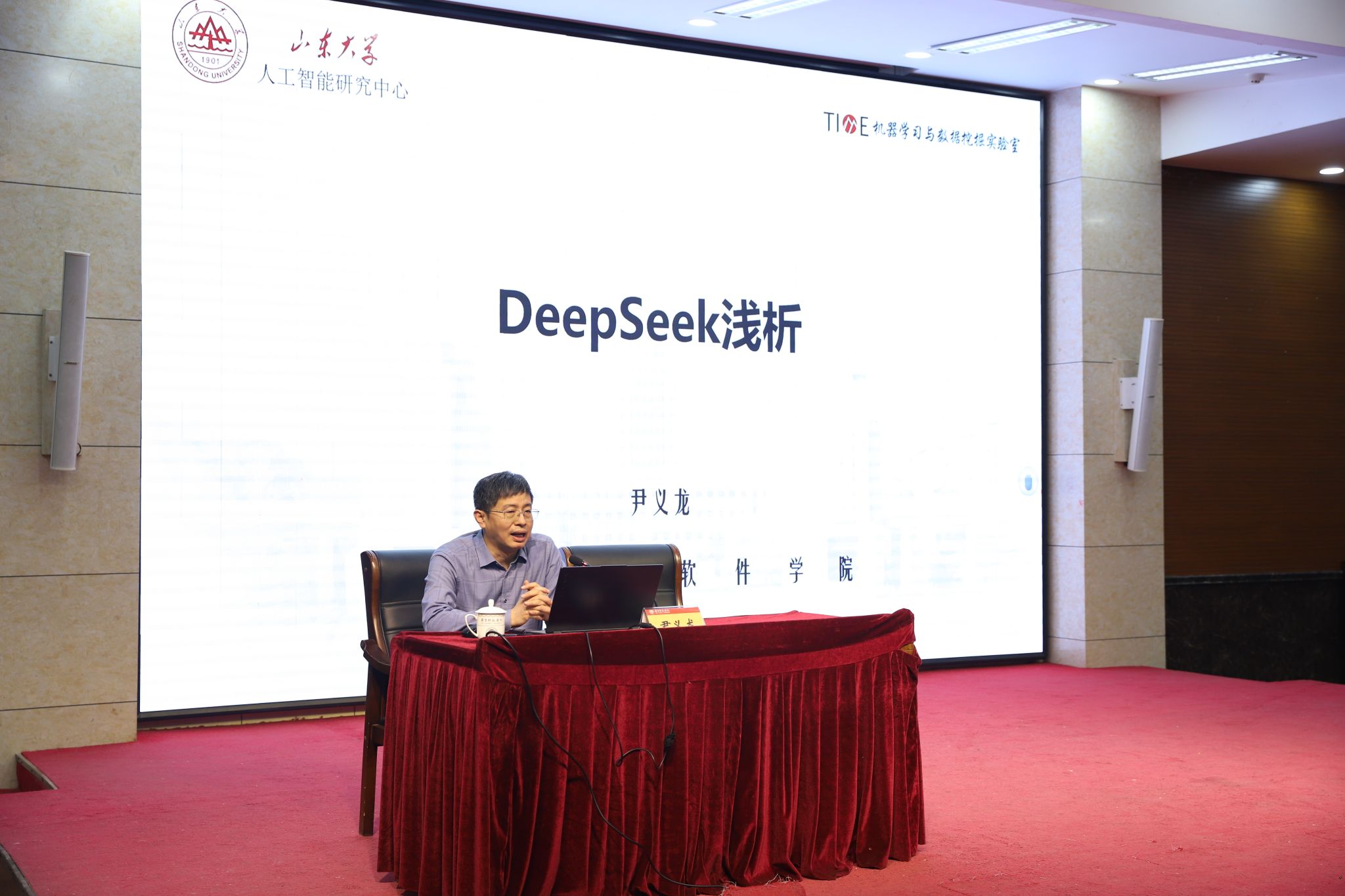 为推动人工智能赋能学科发展和教育教学改革,探索创新教育教学模式,提升教师人工智能素养,3月6日下午,山东大学二级教授、博士生导师尹义龙受邀到校作题为《DeepSeek浅析》的学术报告。学校党委委员、副校长孙洪兆主持报告会。