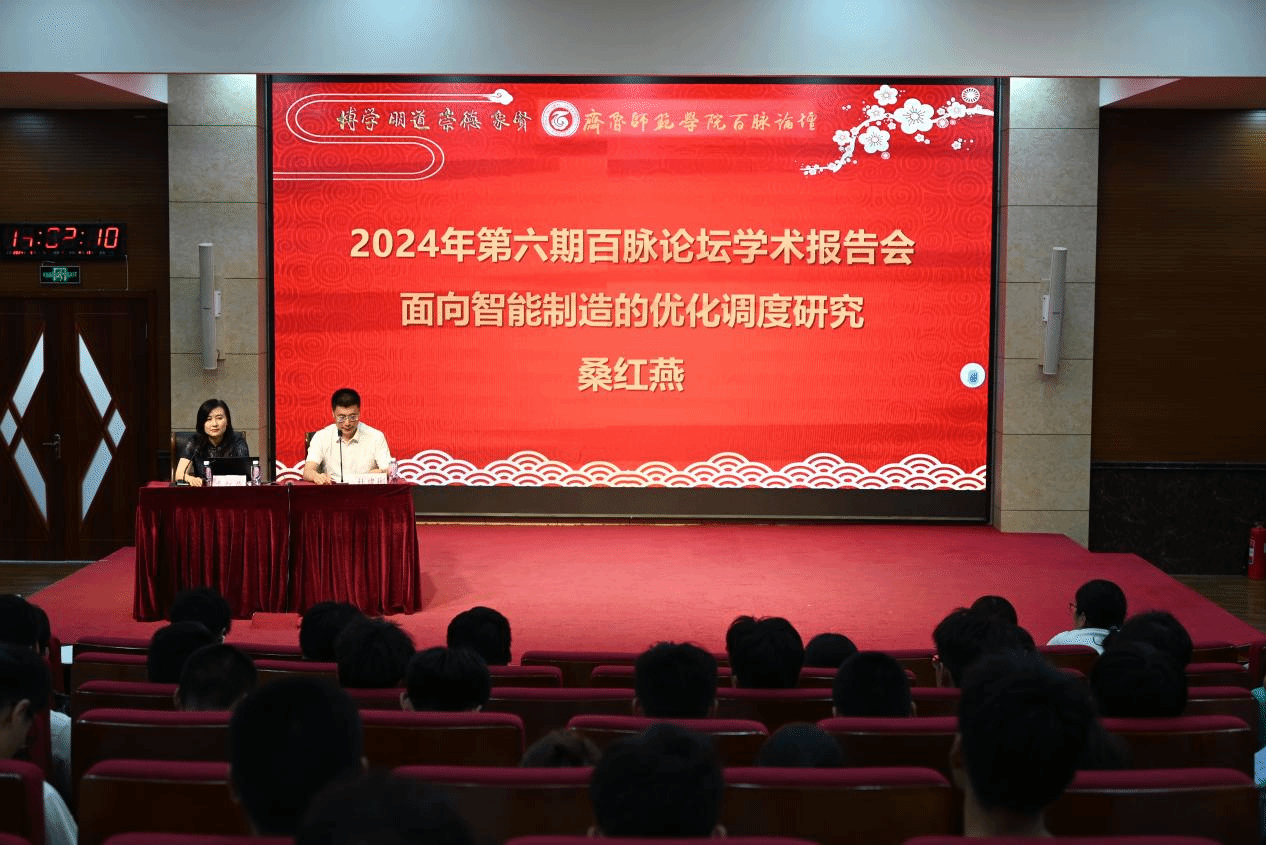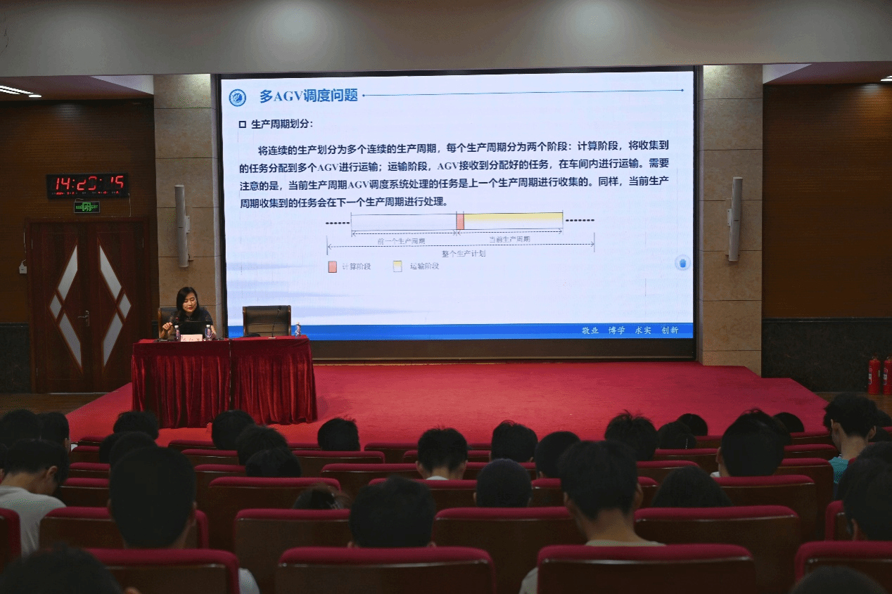 报告会上,桑红燕详细阐述了智能优化的理论方法与应用,并系统介绍了智能制造领域存在的分布式置换流水车间调度、AGV调度、AGV与并行机联合调度等问题,以及相应的进化优化算法。