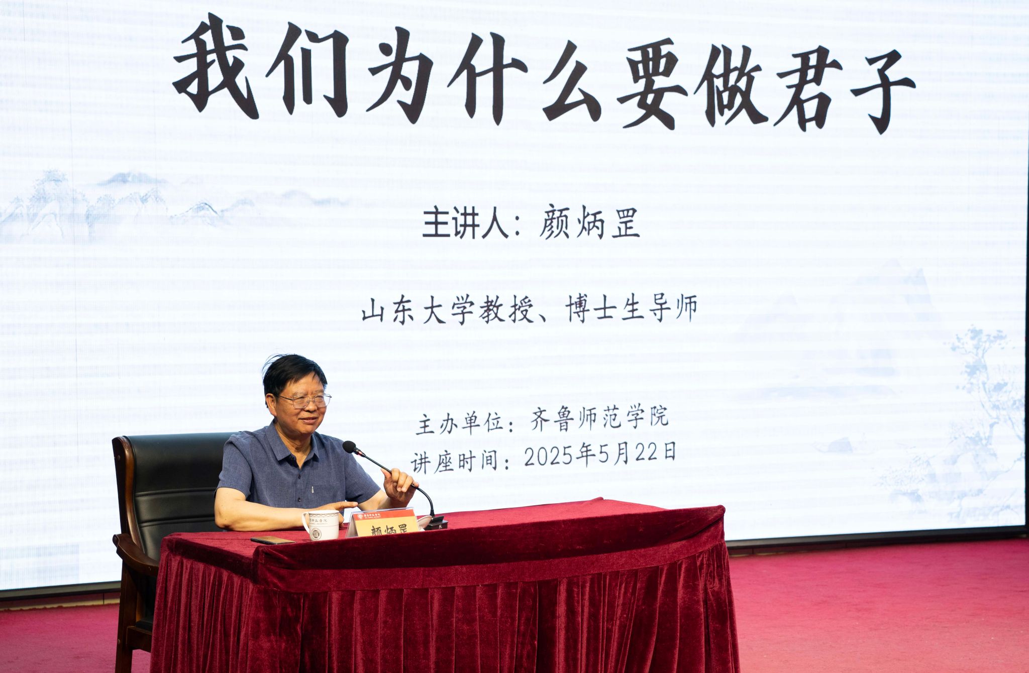 颜炳罡从“什么是君子”“怎样做君子”“如何践行君子之道”三个方面深入阐述,指出君子不仅是中华优秀传统文化的人格化体现,更是道德修养的至高追求。颜炳罡从孟子的“人之初,性本善”“天命之谓性”的君子性善,《论语》“言忠信,行笃敬”的君子言行准则,到《中庸》“智、仁、勇”三达德的君子品格,强调真正的君子必须“守仁行义”,做到知行合一,而非“语言的巨人,行动的矮子”。关于“怎样做君子”,颜炳罡深入解析孟子提出的“四端”——仁、义、礼、智的内在联系,指出“仁”是君子的核心品格。颜炳罡指出,君子文化不仅关乎个人道德成长,更是社会治理的重要基石。践行君子文化不能仅停留于理论,而应融入教育体系和社会实践,使“明德至善”成为每个人的精神追求,真正实现以文化人、以德育人。颜炳罡还对齐鲁师范学院致力于君子文化育人给予了高度评价——既是学校贯彻立德树人根本任务的重要举措,也是深入践行君子文化的生动阐释。