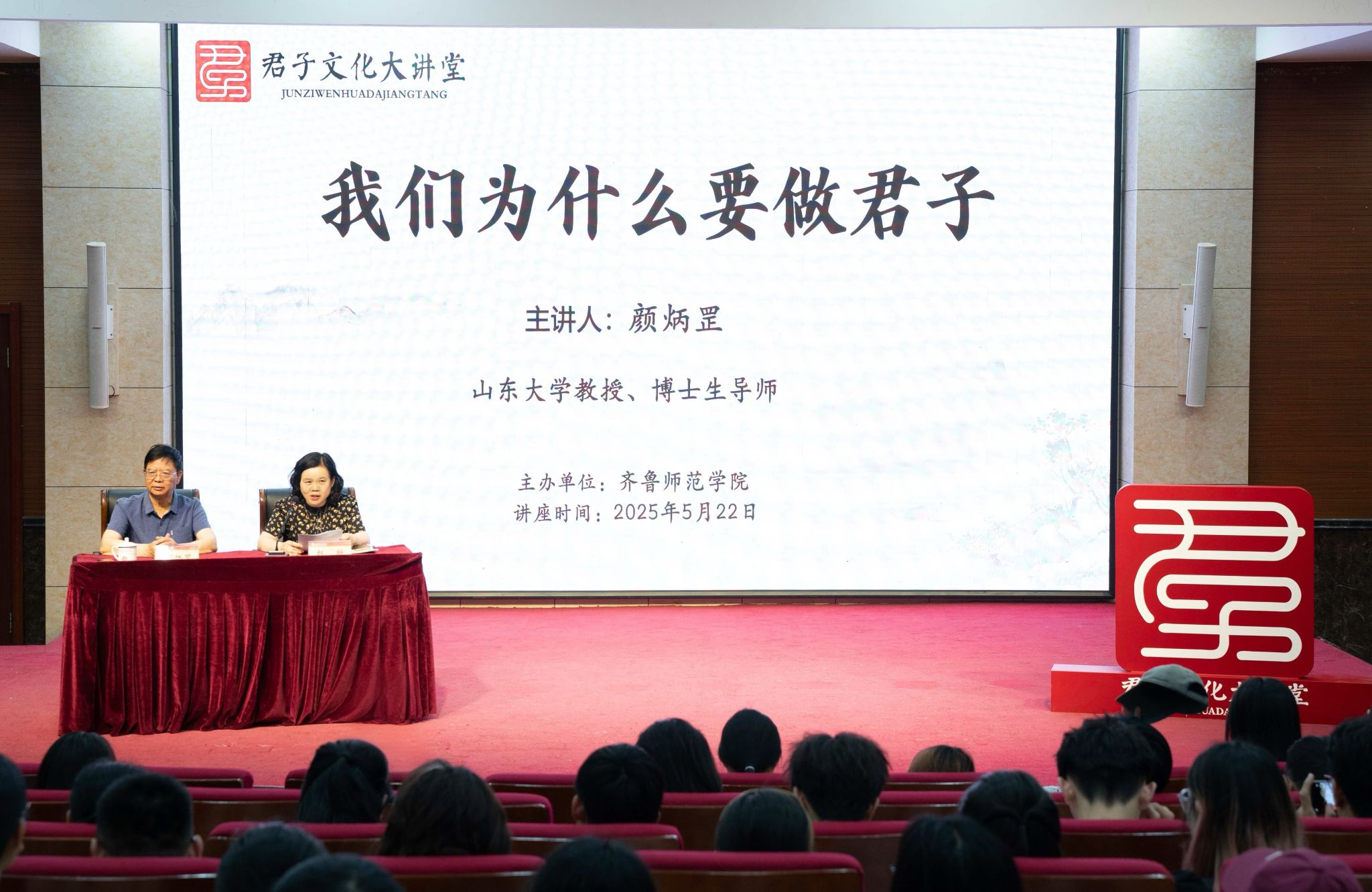 5月22日下午,学校“君子文化”大讲堂第四期学术报告会在章丘校区第一学术报告厅开讲。山东大学教授、博士生导师颜炳罡应邀作题为《我们为什么要做君子》学术报告。报告会由学校党委副书记赵敏主持,党委委员、宣传部部长孙磊出席报告会。
