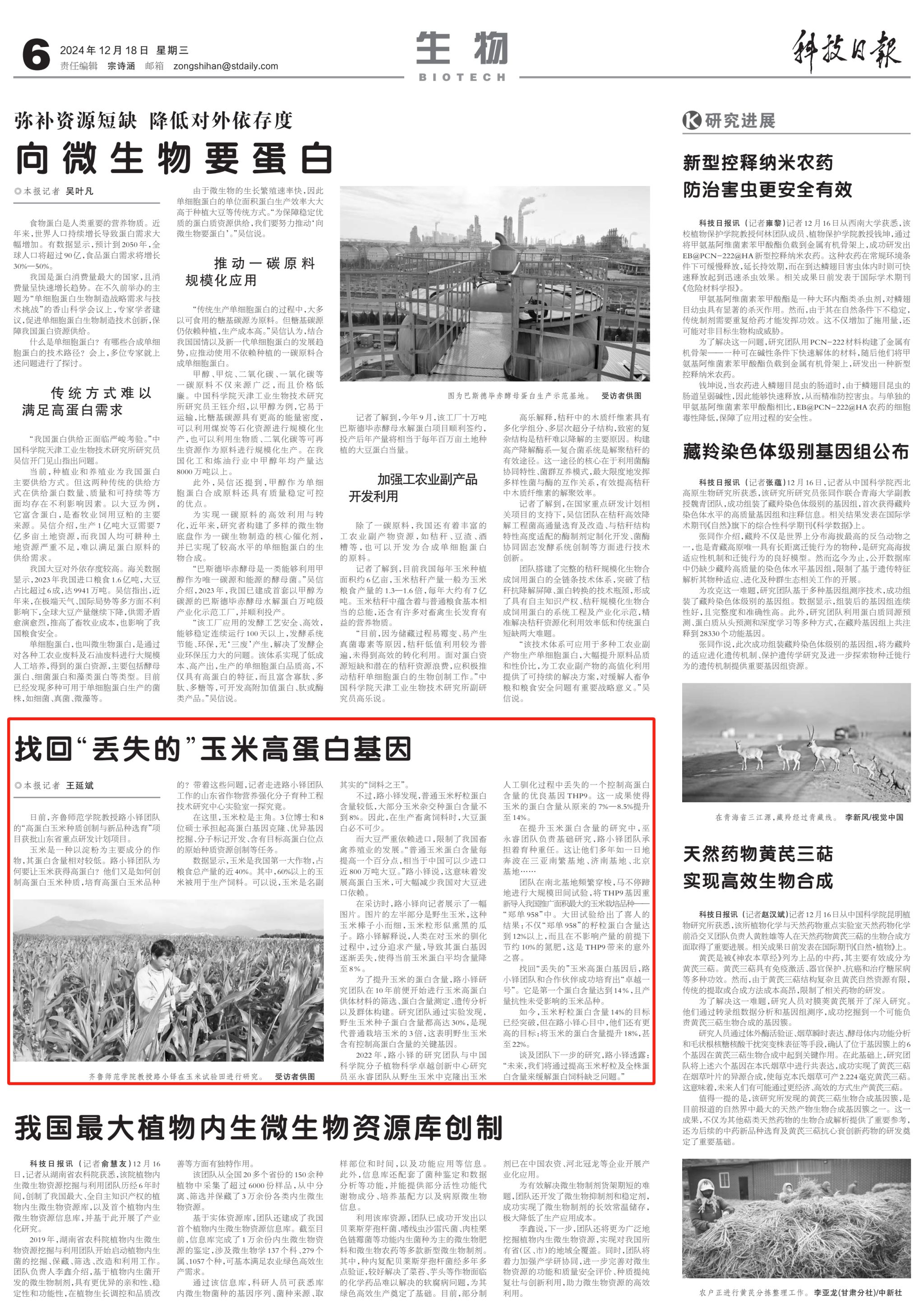 2024年12月18日,《科技日报》在“生物”(第06版)版块以《找回“丢失的”玉米高蛋白基因》为题,报道我校玉米研究取得的重大突破成果。